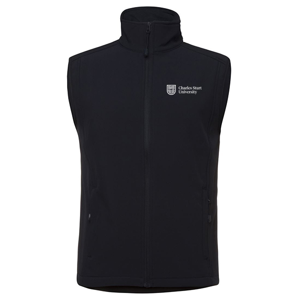| 94% Polyester, 6% Elastine Navy Vest. Soft shell, slim fit with Micro fleece lining Embroidered with university logo
